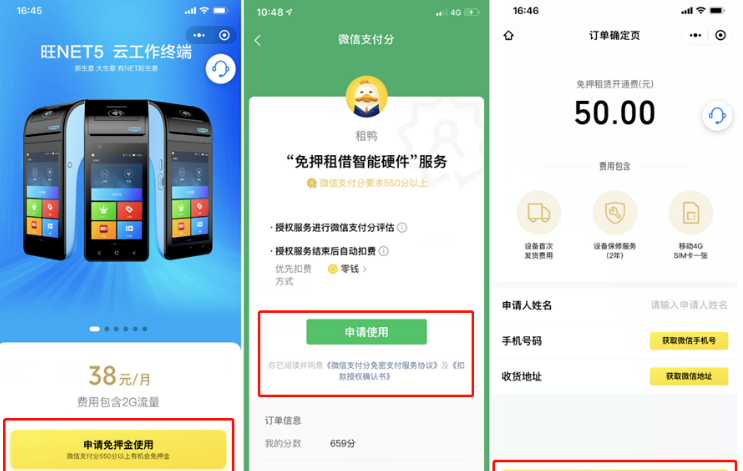 微信POS機(jī)信用免押系統(tǒng)是我們在2020年全新推出的一款提供免押租借智能硬件服務(wù)的系統(tǒng)。只要用戶的支付分在550分及以上,就可以通過微信進(jìn)行線上租賃。