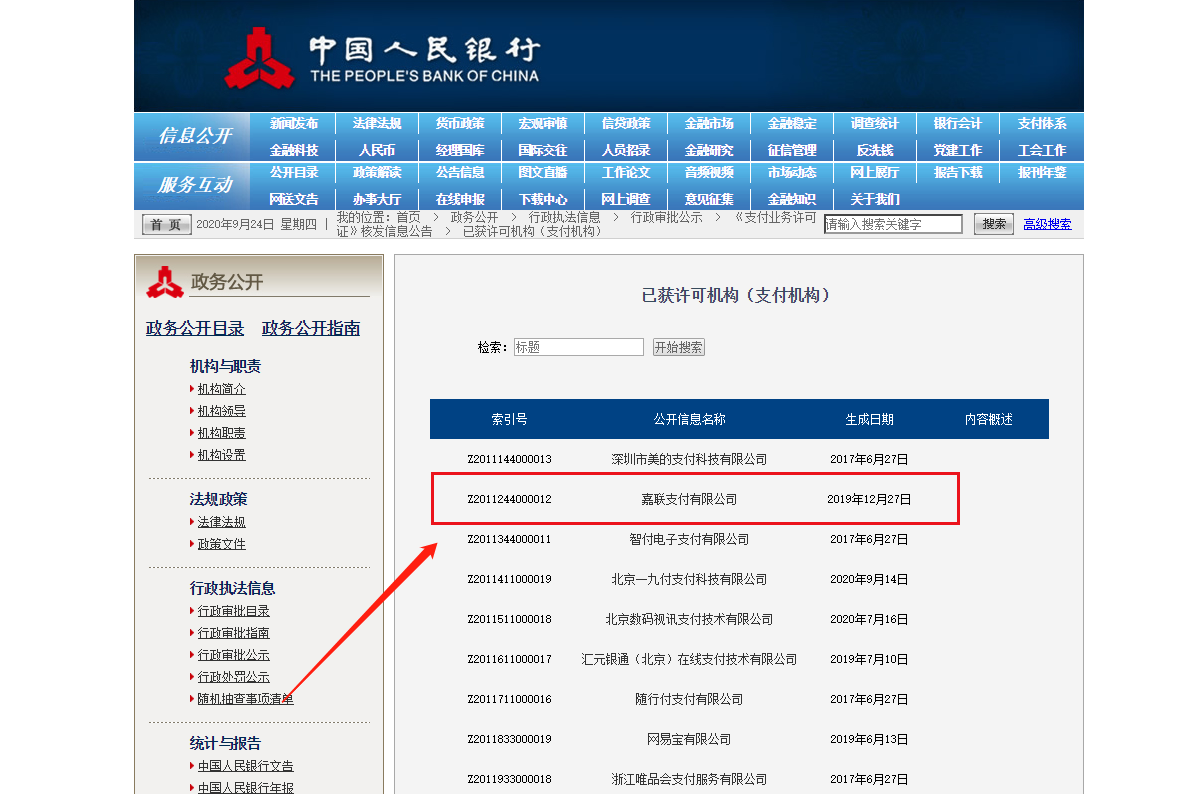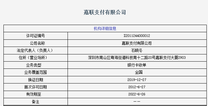 以嘉聯立刷電簽版為例給大家說明下如何查詢支付牌照核實。