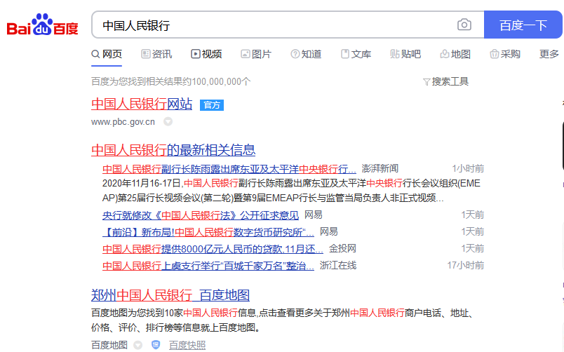 百度搜索中國人民銀行,或者輸入中國人民銀行網址 http://www.pbc.gov