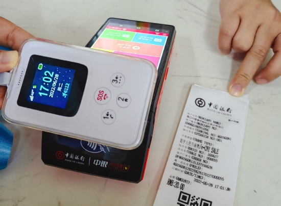 在養(yǎng)護(hù)中心現(xiàn)場(chǎng),海口市民蘇大爺搶先“嘗鮮”,在海南中行工作人員的指導(dǎo)下使用數(shù)字人民幣完成了一次針灸理療費(fèi)用的支付。他高興地表示:“數(shù)字人民幣智能電子證只需要‘碰一碰’就能完成支付,我們老年人上了年紀(jì),許多時(shí)代的‘新花樣’都跟不上,現(xiàn)在終于也能體驗(yàn)到金融科技創(chuàng)新的便利了!”