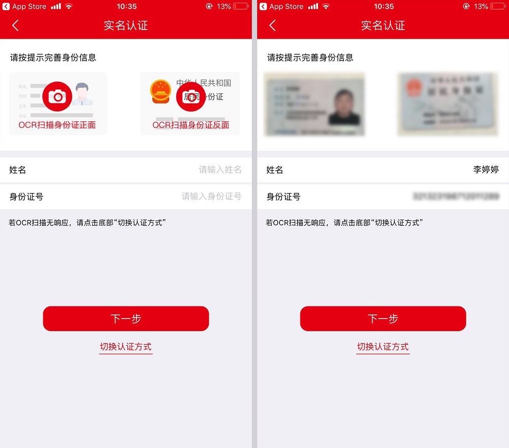 上傳身份證正反面進行實名認證