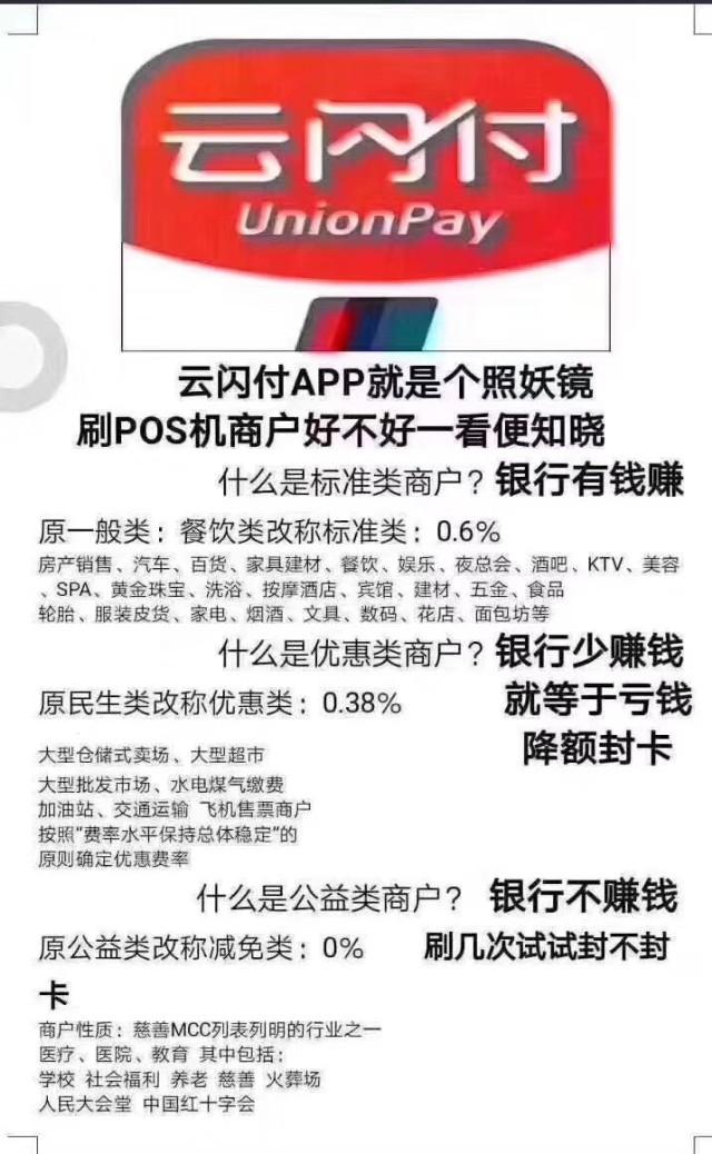首先pos機是否跳碼,最重要的一環。跳碼是刷卡正常扣了標準手續費,刷出來缺是優惠費率或者0費率的公益類商戶。優惠類和公益類商戶,銀行賺錢少或者沒錢賺,銀行自然不可能給提額,還會進行風控降額封卡。很多卡友被降額就有這個原因。具體看下圖
