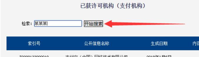 既然是央行頒發的牌照,那我們自然是到央行的官方網站上查詢,直達鏈接:http://www.pbc.gov/zhengwugongkai/127924/128041/2951606/1923625/1923629/index.html