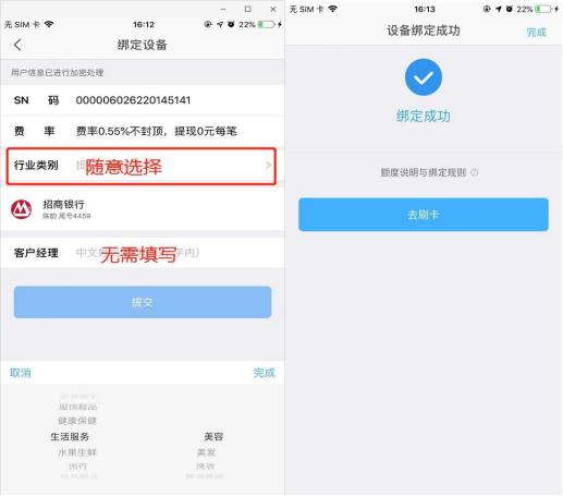 2:個體商戶機器注冊步驟(注冊的手機號必須是綁定儲蓄卡的預留手機號,注冊途中選擇行業類別的真實商戶按照營業執照填寫,不是真實商戶可以隨意選擇)